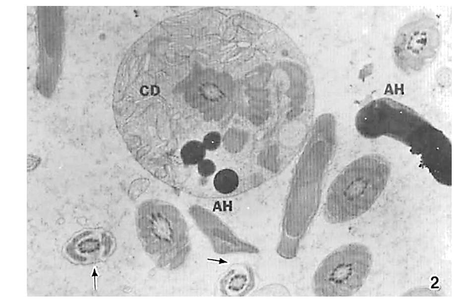 Light and electron microscope studies of the effects of gossypol acetic acid. a phenolic compound isolated from cotton plants.on epididymal tissue in DBAI 2J mice were undertaken since the information on the effects of the compound on the male reproductive tract in mice is limited. The agent. mixed in olive oil, was administered orally to four groups of mice and upon sacrifice. the epididymal tissues were dissected and prepared for light and electron microscopy. Administration of the drug substantially reduces sperm motility and viable sperm counts and induced anomalies in sperm pans and mitochondrial structures. Numerous vesicular structures containing granules and concentric membranous bodies in the principal and light cells, dilation of the Golgi complex and endoplasmic reticulum, and accumulation of lysosomal bodies were found in epididymal cells. The severity and frequency of the ultrastructural changes increased with dose and duration of the treatments
